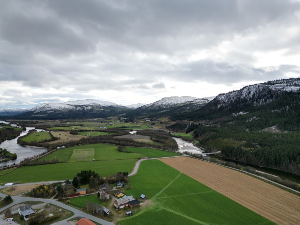 Der Riksvei 3 verläuft in großen Teilen einfach durch die Natur. Keine störenden Häuser, keine Industrie, einfach nur Natur. Schon aus der Ferne konnten wir Berggipfel mit Schnee erkennen. Erst zart gepudert, dann mit geschlossener Schneedecke. Hinter jeder Biegung wartete das nächste umwerfende Panorama. Über 100 Kilometer folgten wir dem Fluss Glomma, der uns durch fantastische Berglandschaften führte. Der Schnee auf den Bergen wurde immer mehr und je weiter wir fuhren, desto mehr wurde auch der Schnee direkt neben der Straße.